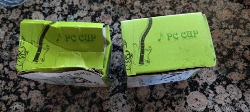 Cups were packaged in bubble wrap inside of the box and boxes were inside of the styrofoam with plastic over them. When I cut the plastic I saw that styrofoam was broken and box was very damaged. I was sure that cups wouldn't survive, but they did! And they are absolutely adorable!!!